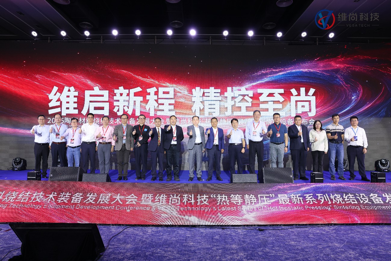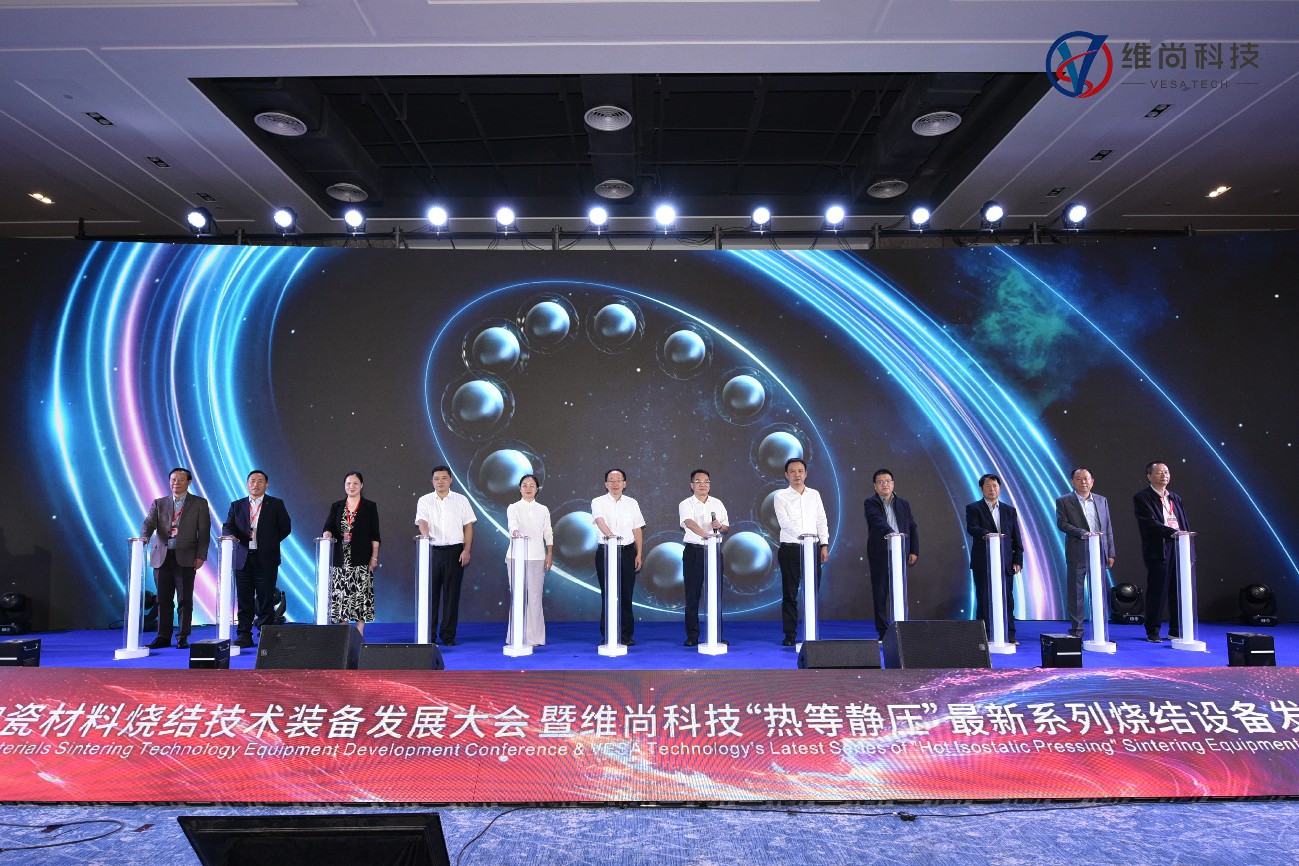 隨后,高光時刻來臨!株洲市委常委、市委秘書長楊英杰攜市、區級相關領導,行業協會負責人與柴神洲董事長共同推桿 —— 隨著啟動裝置緩緩點亮,本次盛會正式啟幕,維尚科技 “熱等靜壓” 新品也同步揭開面紗!這一時刻,不僅是維尚發展的新起點,更標志著國產先進陶瓷裝備邁向更高質量的發展階段!